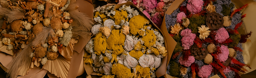 A természet ajándékait gyűjtjük, szárítjuk és új életre keltjük, hogy örök szépségük hosszú ideig otthonod dísze lehessen. Minden csokorban ott a szél suttogása, a nap simogatása és a föld illata.